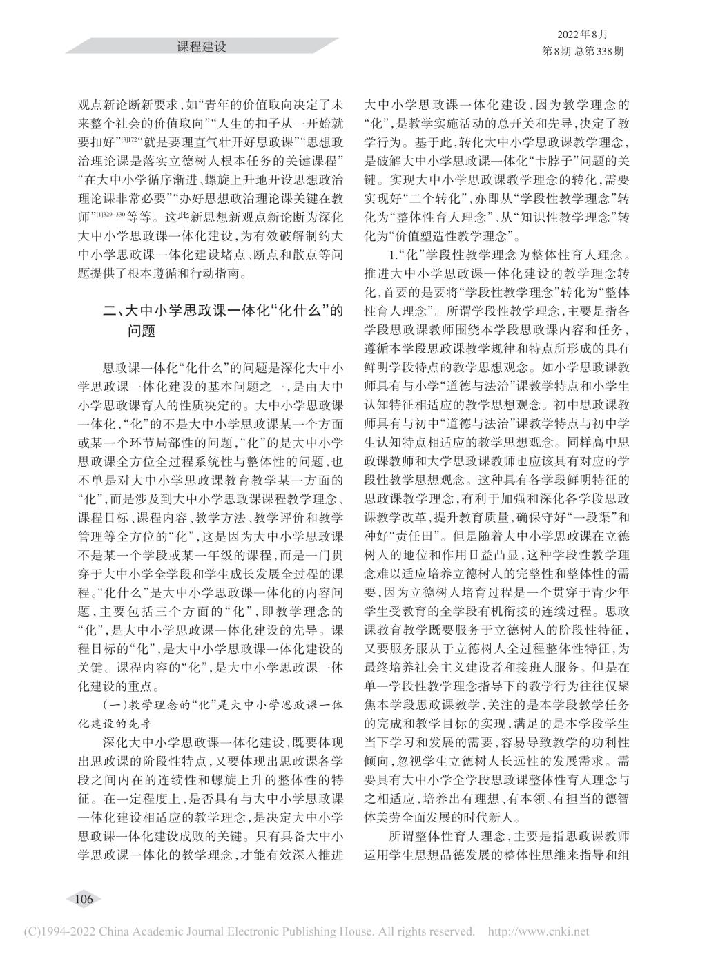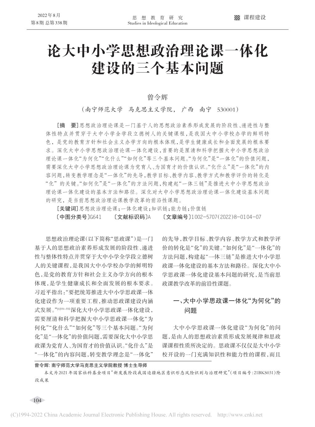 论大中小学思想政治理论课一体化建设的三个基本问题_曾令辉