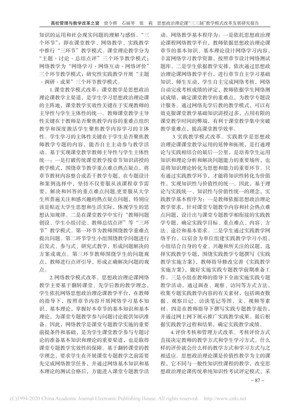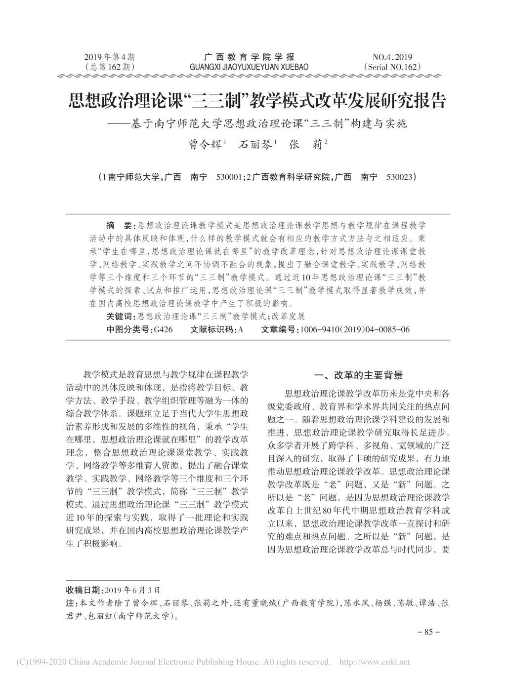 思想政治理论课“三三制”教学模式改革发展研究报告——基于英国上市公司官网365思想政治理论课“三三制”构建与实施_曾令辉