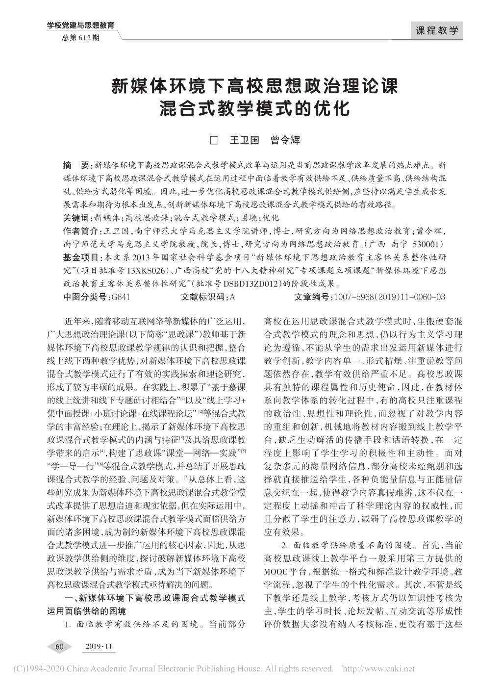 新媒体环境下高校思想政治理论课混合式教学模式的优化_王卫国