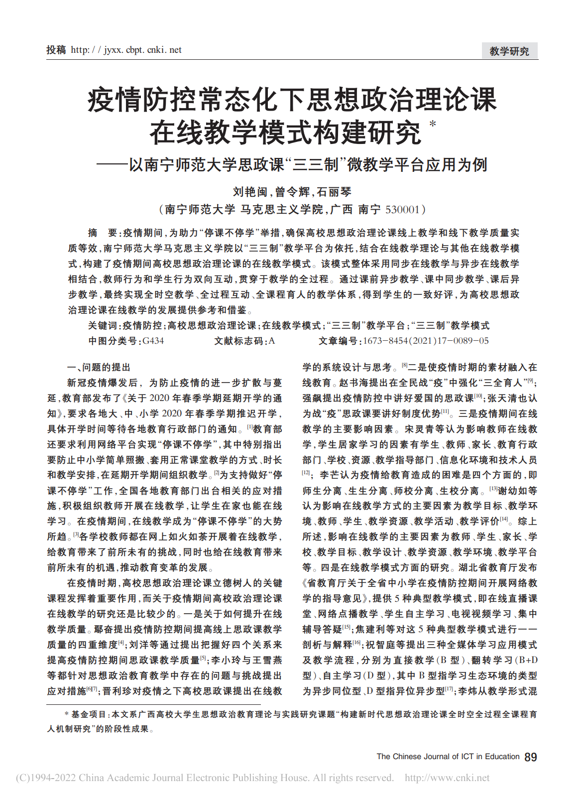 疫情防控常态化下思想政治理论课在线教学模式构建研究——以英国上市公司官网365思政课“三三制”微教学平台应用为例_刘艳闽