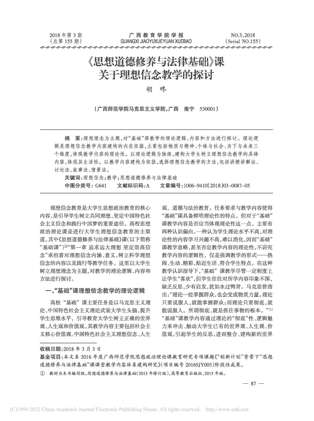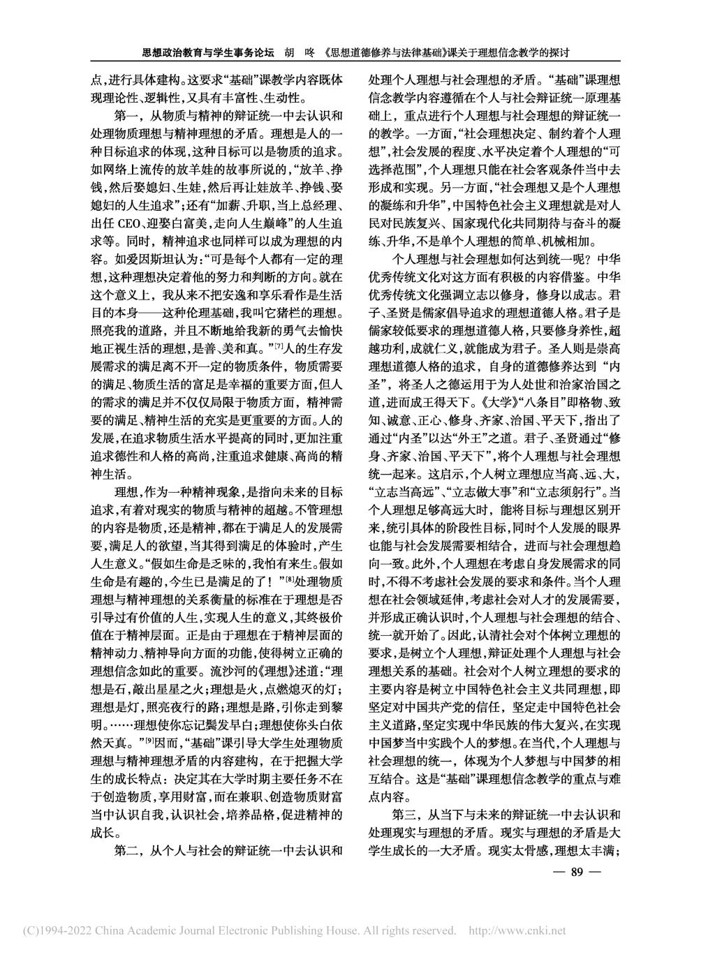 《思想道德修养与法律基础》课关于理想信念教学的探讨_胡咚