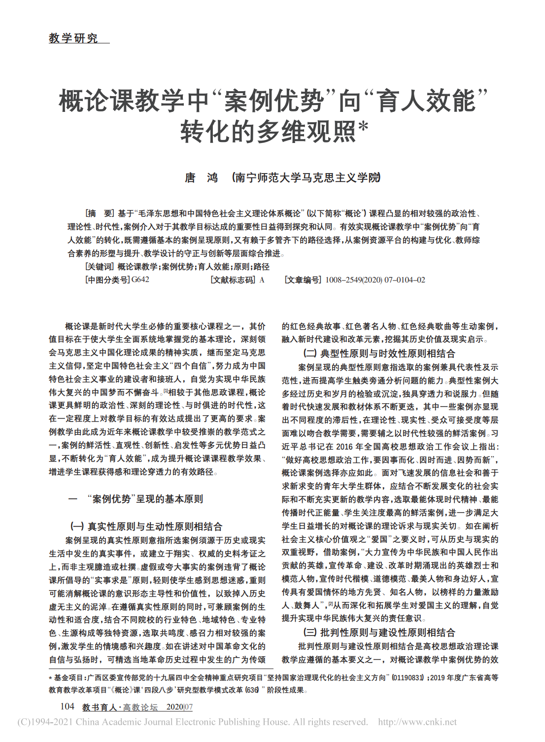 概论课教学中“案例优势”向“育人效能”转化的多维观照_唐鸿