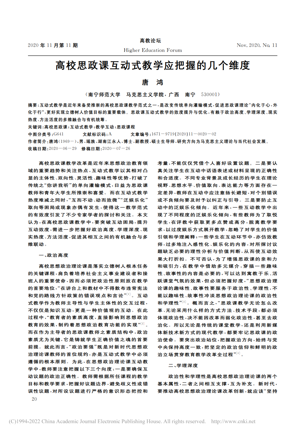 高校思政课互动式教学应把握的几个维度_唐鸿