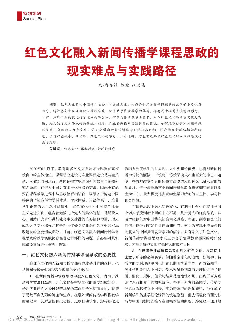 红色文化融入新闻传播学课程思政的现实难点与实践路径_郑振锋