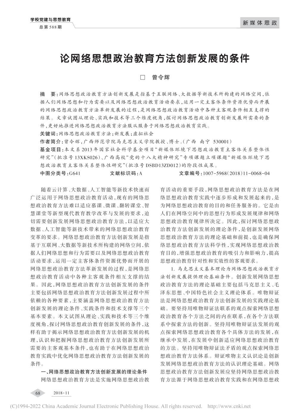 论网络思想政治教育方法创新发展的条件_曾令辉