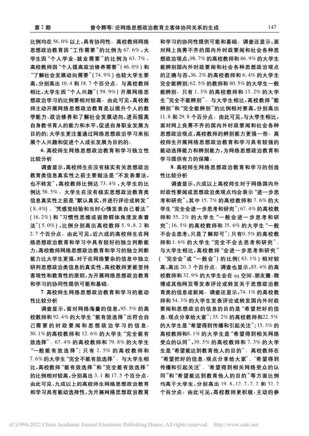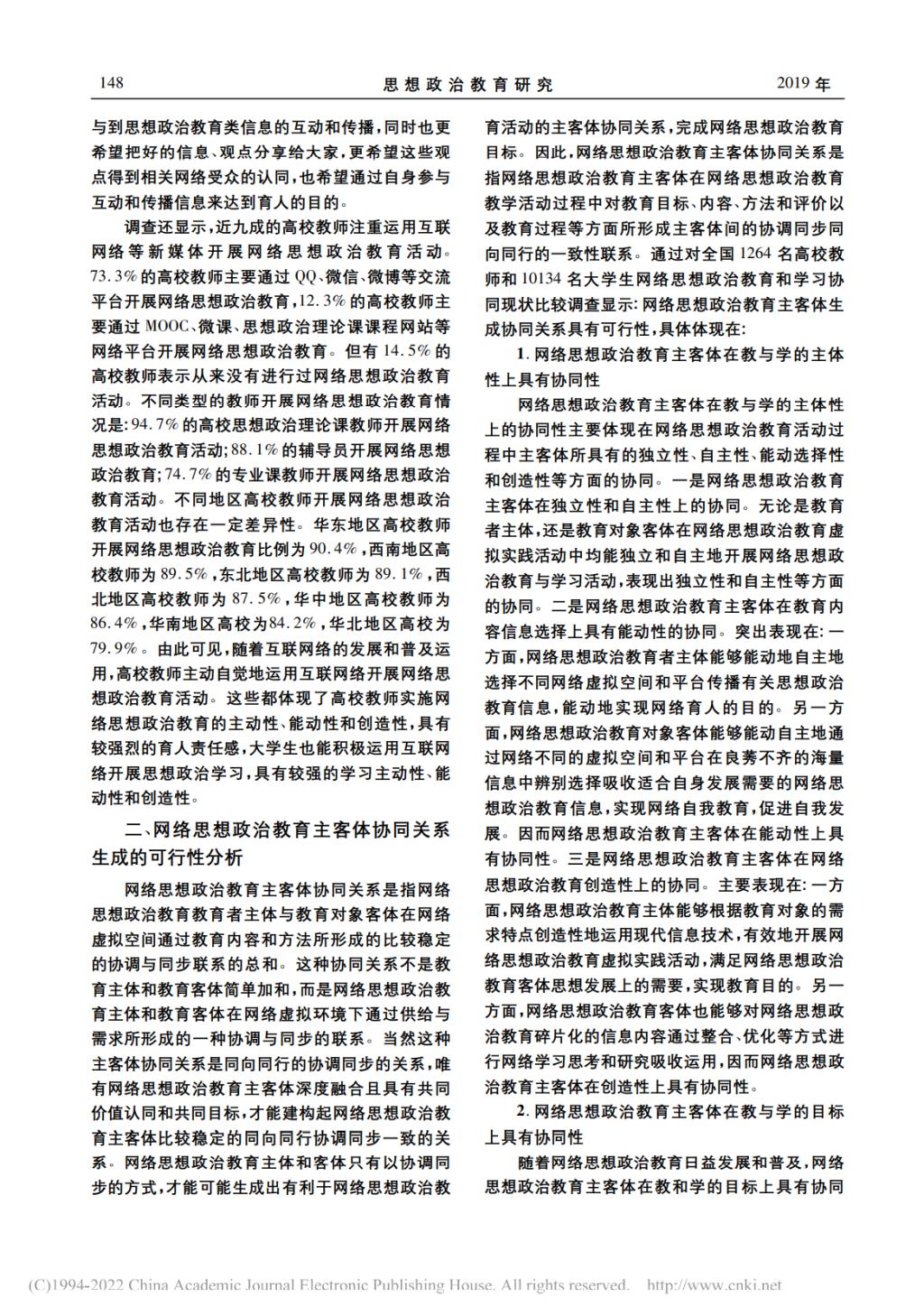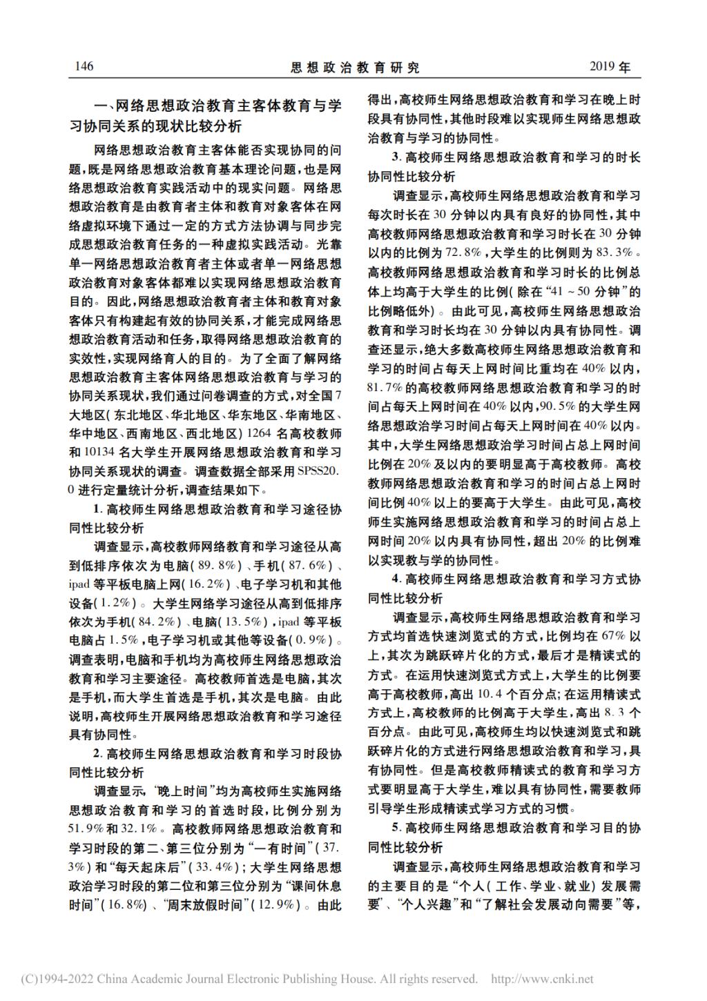 论网络思想政治教育主客体协同关系的生成——基于高校师生网络思想政治教育与学习现状调查_曾令辉