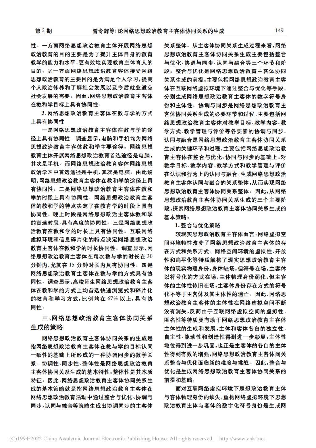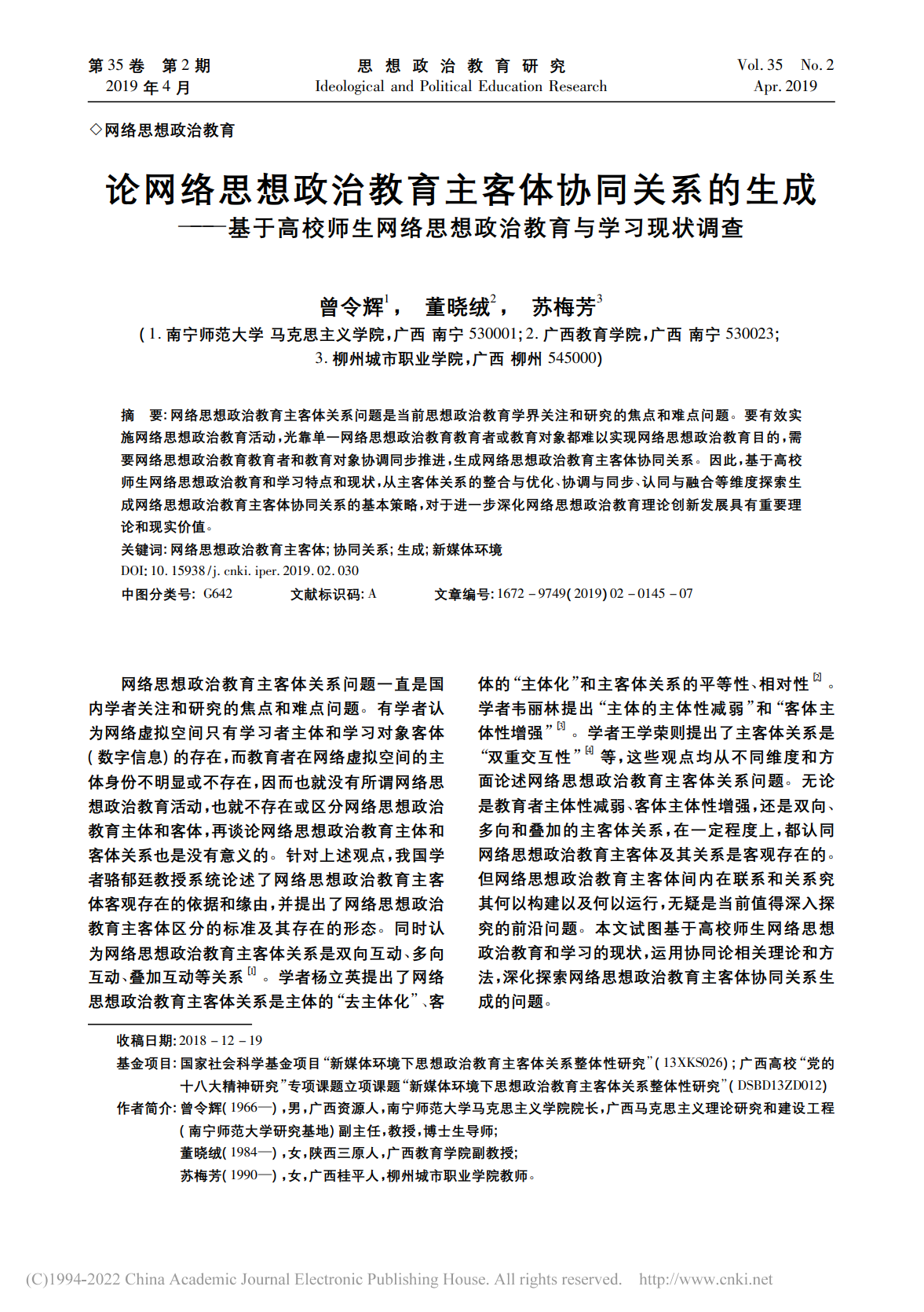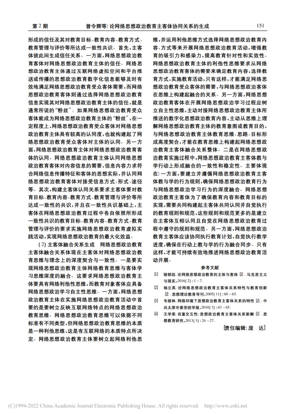 论网络思想政治教育主客体协同关系的生成——基于高校师生网络思想政治教育与学习现状调查_曾令辉
